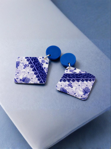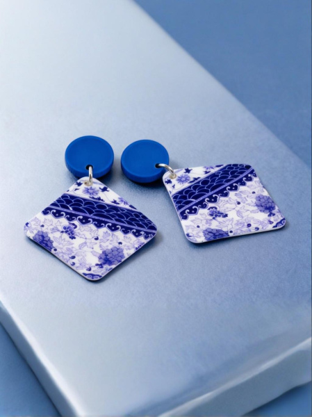 Pack the timeless Chinese blue-and-white porcelain entwined vine pattern (an ancient symbol of “endless vitality”) into a modern geometric square pendant! With a super-light 6.8g design, the blue-and-white color scheme fits the fresh spring/summer vibe. Whether you pair it with a T-shirt and jeans for a casual look or a new Chinese-style dress for a cultural twist, these earrings hide a “Eastern aesthetic Easter egg” in your outfit—guaranteed to get you link requests on a stroll or date!