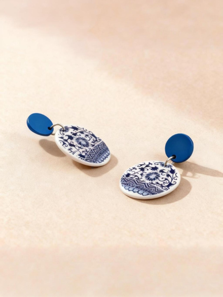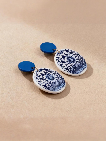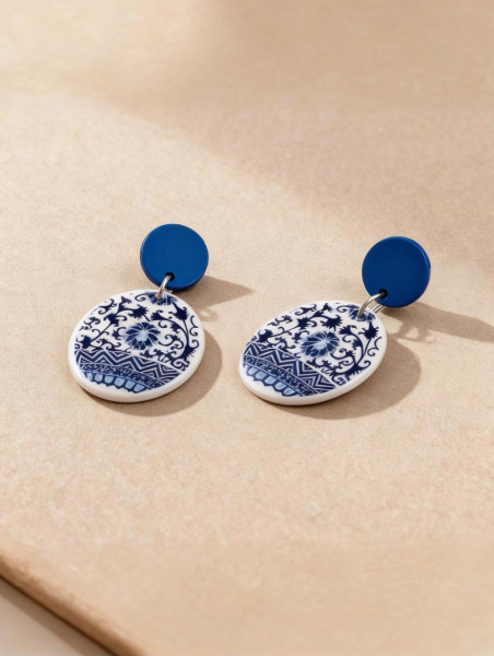 Oriental Classic Blue and White Porcelain Pattern Earrings