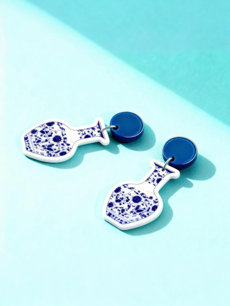 Crafted to vividly replicate the blue-and-white porcelain vase, these earrings feature smooth, elegant lines that exude classical beauty. Paired with minimalist white round ear studs, they strike a refined visual balance. Perfectly proportioned, each earring measures 2 cm wide and 4.5 cm long, weighing only 5.8 grams for lightweight comfort without burdening the ears. The classic blue-and-white color scheme is pure and timeless, with the vase’s floral patterns meticulously printed, blooming like an artistic flower at the ear. Whether viewed up close or from afar, they radiate captivating charm, effortlessly elevating any outfit with a touch of brilliance.
