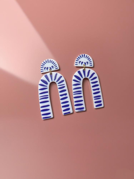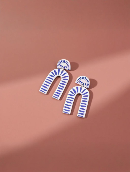 Inspired by the latest international fashion magazine trend of “curve aesthetics,” these earrings combine a U-shaped design with cloud and floral patterns from Ming dynasty blue-and-white porcelain. The U-shape mimics nature’s flowing lines, while the patterns, rooted in ancient symbols of good fortune and growth, were chosen to merge Chinese heritage with modern curves, creating a fresh seasonal highlight.