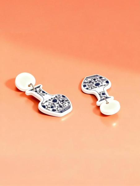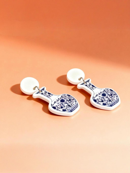 Crafted to vividly replicate the blue-and-white porcelain vase, these earrings feature smooth, elegant lines that exude classical beauty. Paired with minimalist white round ear studs, they strike a refined visual balance. Perfectly proportioned, each earring measures 2 cm wide and 4.5 cm long, weighing only 5.8 grams for lightweight comfort without burdening the ears. The classic blue-and-white color scheme is pure and timeless, with the vase’s floral patterns meticulously printed, blooming like an artistic flower at the ear. Whether viewed up close or from afar, they radiate captivating charm, effortlessly elevating any outfit with a touch of brilliance.